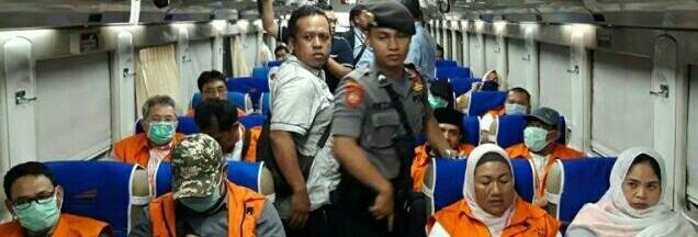 Para terdakwa telah dibawa ke Surabaya menggunakan kereta api tadi malam, dan dititipkan sementara di Rutan Medaeng dan Cabang kelas 1 rutan Surabaya pada Kejaksaan Tinggi Jawa Timur.