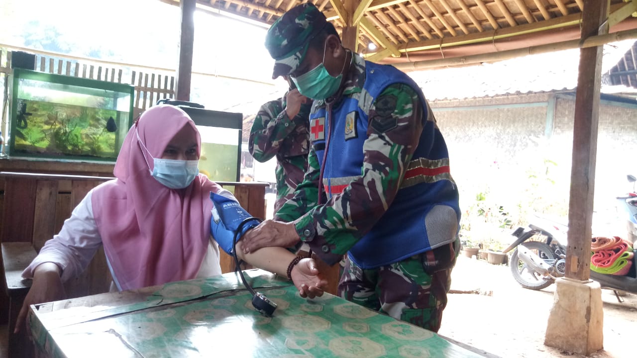 Dengan dikebutnya pelaksanaan pembangunan Jalan TMMD ke 110 di kp Cisaat Ciloa pada hari ini, personil Satgas beserta masyarakat yang membantu pelaksanaan dilapangan tetap melakukan pemeriksaan tensi dan Suhu Tubuh.
