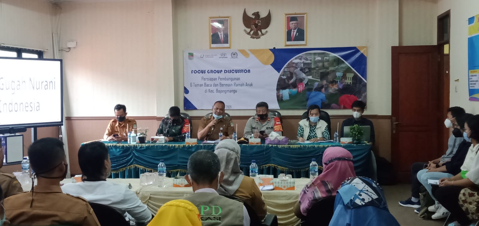 TEROBOSHUKUM.CO.ID – Pemerintah Kecamatan Bojongmangu bersama Yayasan Gugah Nurani Indonesia (GNI) menggelar rapat perencanaan persiapan pembangunan enam Gedung Taman Baca dan Taman Bermain Ramah Anak, di Aula Kecamatan Bojongmangu, Senin, (18/10/2021).