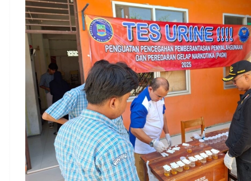 TEROBOSHUKUM.CO.ID – KABUPATEN BEKASI. Badan Narkotika Kabupaten (BNK) Bekasi menggelar sosialisasi Pencegahan dan Pemberantasan Penyalahgunaan dan Peredaran Gelap Narkotika (P4GN) serta tes urine di SMAN 8 Tambun Selatan pada Selasa, 27 Mei 2025. Kegiatan ini merupakan bagian dari upaya BNK Bekasi untuk menjadikan Kabupaten Bekasi sebagai wilayah yang bersih dan sejahtera, bebas dari bahaya narkoba.