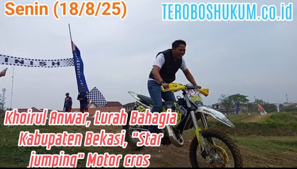 TEROBOSHUKUM.CO.ID – Kelurahan Bahagia, Babelan, Kabupaten Bekasi Jawa Barat. Lapangan Gobek (Gogolio Bekasi) Motocross merayakan ulang tahunnya yang ke-10 dengan menggelar lomba balap motocross yang dimeriahkan dengan semangat nasionalisme masyarakat Kelurahan Bahagia. Acara ini diselenggarakan dalam rangka memperingati Hari Jadi Kabupaten Bekasi ke-75 dan Hari Kemerdekaan Republik Indonesia ke-80 pada Senin (18/8/25).