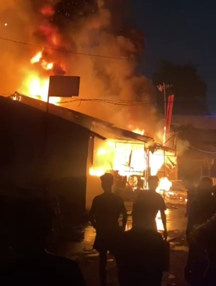 Api dengan cepat melahap bangunan rumah warga hingga menjalar ke sebuah bengkel motor dan warung yang berada tak jauh dari lokasi.