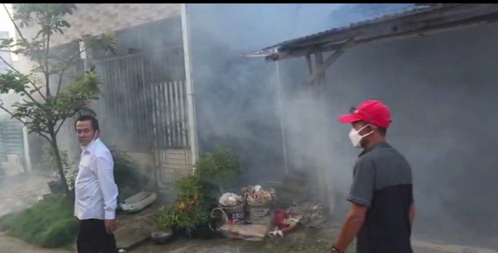 Kepala Desa Kedung Pengawas, Nasarudin, turun langsung pimpin pelaksanaan fogging di Perumahan Pondok Afi 2, tepatnya di lingkungan RT 29 dan RT 30 RW 09, Kadus 4, Desa Kedung Pengawas, Kecamatan Babelan, Kabupaten Bekasi.