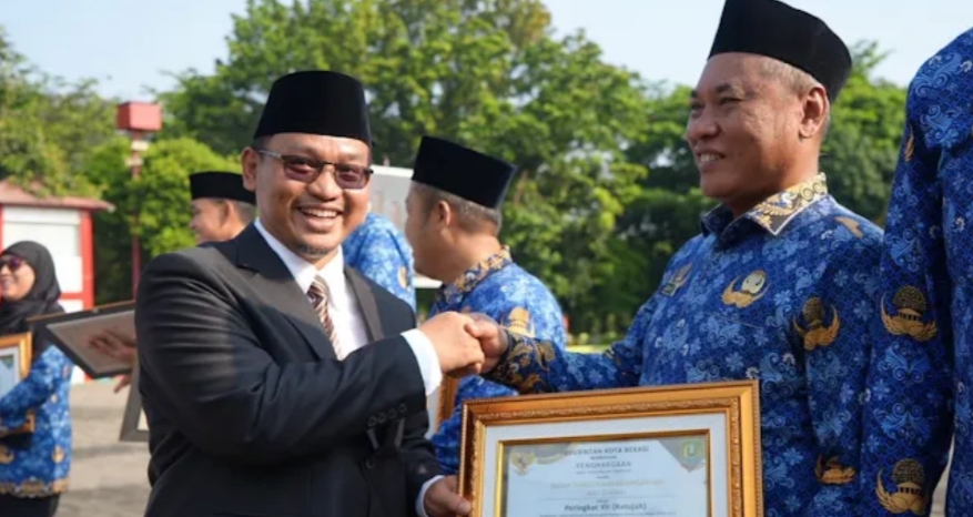 Dalam kesempatan yang sama, Ketua DPRD Kota Bekasi, Sardi Efendi, juga menyerahkan penghargaan kepada Kepala BPKAD, Yudianto, sebagai bagian dari rangkaian peringatan Hari Otonomi Daerah ke-XXX tahun 2026. (Adv DPRD Kota Bekasi)