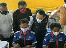 TEROBOSHUKUM.CO.ID – Penjabat Bupati Bekasi Dani Ramdan memantau langsung kegiatan serbuan vaksinasi di empat titik Kabupaten Bekasi, Sabtu (31/7). Salah satunya di Desa Setia Mekar. Vaksinasi tersebut dilakukan Pemdes Setia