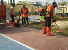 TEROBOSHUKUM.CO.ID – Abdul Muid, Unit Pelaksana Teknis Daerah (UPTD) Pengelolaan persampahan Wilayah I Bersinergi dengan Lurah Kebalen, Firman Arief Sembada, bersinergi membersihkan area kantor Kelurahan Kebalen dalam rangka