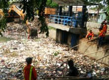 Foto: Pasukan Orange UPTD Pengelolaan Sampah Wilayah IV saat membersihkan sampah di Pintu Air Kali CBL Cikarang Utara TEROBOSHUKUM.CO.ID – Para pesapon atau yang dikenal dengan sebutan pasukan orange UPT Pengelolaan Persampahan Wilayah IV, berjibaku membersihkan dan mengangkut sampah yang ada disekitaran Pintu Air Kali Cikarang Bekasi Laut (CBL) Desa Karang Asih, CikarangUtara.