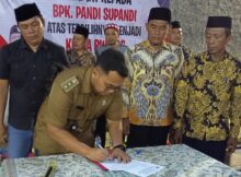 Bupati Bekasi Ade Kuswara Kunang menandatangani nota kesepahaman (MoU) dengan PT Semen Indonesia Tbk (SIG) yang berlangsung di Kantor Bupati Bekasi, Komplek Pemkab Cikarang Pusat, Senin (25/8/3025). TEROBOSHUKUM.CO.ID