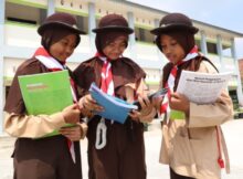 BELAJAR : Siswa SDN Wanasari 06, tengah belajar di halaman sekolah nampak dibelakang sarana hasil rehabilitasi total bangunan gedung sekolah. TEROBOSHUKUM.CO.ID – CIKARANG PUSAT . Memasuki usia ke-75