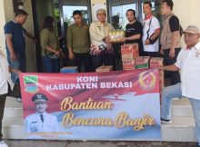 TEROBOSHUKUM.CO.ID – KABUPATEN BEKASI. Komite Olahraga Nasional Indonesia (KONI) Kabupaten Bekasi, Jawa Barat turut merasakan empati terhadap korban bencana hidrometeorologi dengan membantu warga terdampak banjir di Kecamatan Tambun