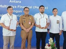 TEROBOSHUKUM.CO.ID – KOTA BEKASI. Pj. Wali Kota Bekasi, Gani Muhamad menyaksikan penandatanganan perjanjian kerjasama antara BPRS Patriot bersama PT. Sarana Multigriya Finansial (SMF) dalam penyaluran dana hibah untuk