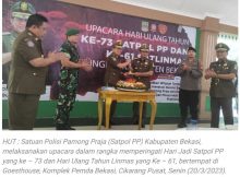 TEROBOSHUKUM.CO.ID – Pj Bupati Bekasi, Dani Ramdan menghadiri hari jadi Satuan Polisi Pamong Praja (Satpol PP) ke-73 dan Satlinmas ke-61 di Komplek Pemkab Bekasi pada Senin (20/03). Dani