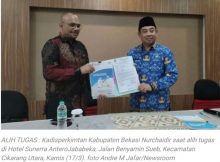 TEROBOSHUKUM.CO.ID – Kabupaten Bekasi. Perumahan Rakyat, Pemukiman dan Pertanahan (Disperkimtan) Kabupaten Bekasi menggelar serah terima jabatan (sertijab) dari Muclis sebagai Pelaksana Tugas Kadisperkimtan kepada Nurchaidir sebagai Kepala Disperkimtan