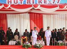 Pj Bupati Bekasi Dani Ramdan saat memimpin prosesi upacara pringatan HUT Kemerdekaan RI ke-77 di Halaman Plaza Pemkab Bekasi, Kecamatan Cikarang Pusat. teroboshukum.co.id – Penjabat Bupati Bekasi Dani