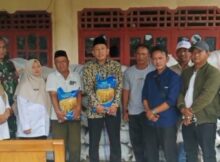 BANTUAN : Pemerintah Kabupaten Bekasi melalui Dinas Pertanian menyalurkan bantuan benih padi sebanyak 9.750 kilogram kepada petani terdampak banjir di Kecamatan Cabangbungin. Penyaluran bantuan tersebut berlangsung di Desa