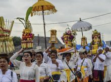 “Pada hari ini, dilakukan pula nyukat karang, yaitu penentuan batas lokasi yang akan digunakan untuk perayaan puncak Melasti. Sedangkan upacara sakral melasti sebagai puncak acara di lokasi tersebut