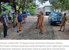 TINJAU LANGSUNG: Plt Kepala Dinas Perkimtan Kabupaten Bekasi, Nurchaidir meninjau langsung proyek peningkatan jalan lingkungan (jaling) di Kelurahan Wanasari, Kecamatan Cibitung, pada Senin (06/06) TEROBOSHUKUM.CO.ID – KABUPATEN BEKASI